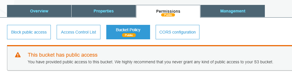 Since public access can be given inadvertently, AWS indicates such access visually: