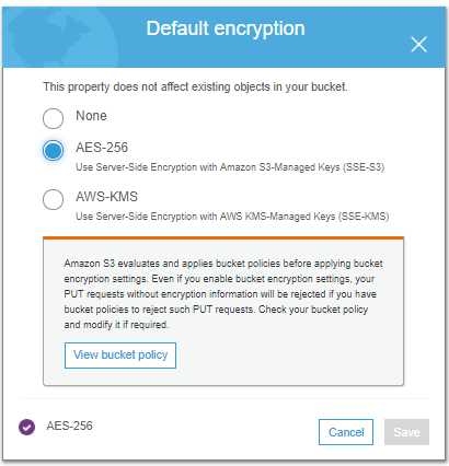 This encryption is the easiest way to enforce data encryption at rest. All you need to do is tick a button, and from this point onwards all the new object will be encrypted.
